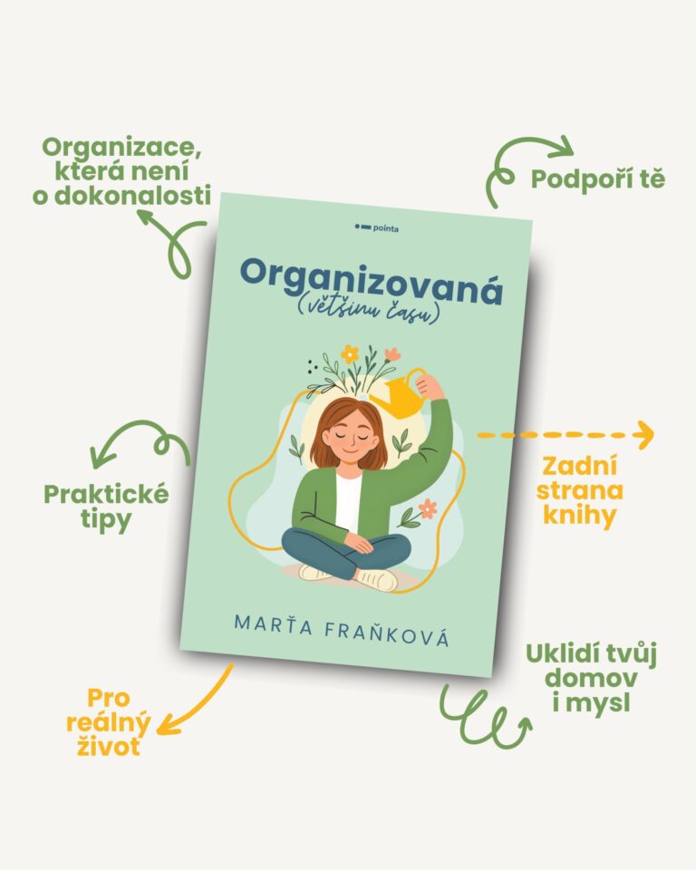 V knize Organizovaná (většinu času) tě vezmu na cestu k uvolněnějšímu domovu, ve kterém je místo pro chaos i radost. Plná příběhů, praktických tipů a laskavého humoru.