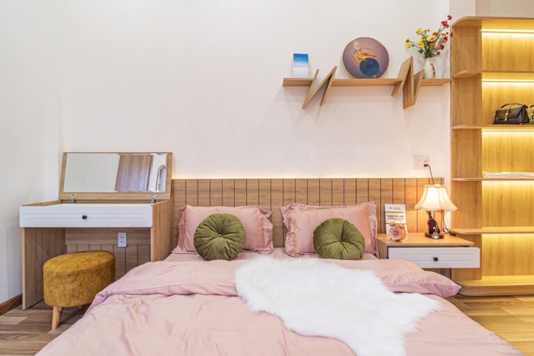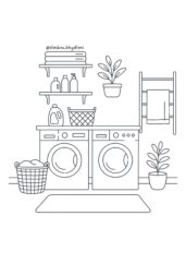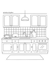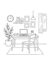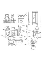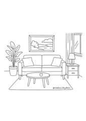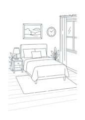 Vybarvi jednotlivé kusy nábytku a dej jim realistický nádech – můžeš pracovat s více odstíny, aby vznikl dojem hloubky a materiálu (např. dřevo, látka). Použij pastelky, fixy nebo jiná média, vrstvi jemně.